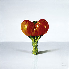 " ... die coole Broccomate; Brokkoli und Tomate, 2 Gemüsesorten in einer, nicht aufgepfropft, sondern ganz natürlich gewachsen wie gemalt, ab heute in ihrem Supermarkt. Unsere Lebensmittelindustrie schwingt sich zu Höchstleistung auf. Als Einzelbild sowie als Tryptichon mit Zwiebrika und Maisgurke vom Künstler Jörg Strobel total überzeugend erzeugt. Das ist meisterlich gemalt, das Thema ist meisterlich persifliert, zentriert und präsentiert im vollkommenen Quadrat, Warenästhetik 1 A. Was soll man da noch sagen! Alle Achtung!"