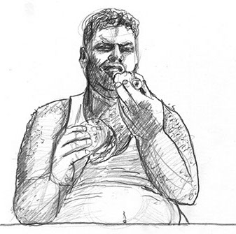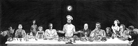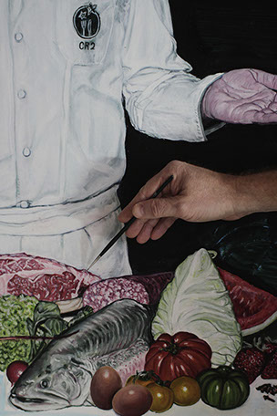 Es ist geschafft! Nochmals vielen Dank an Christoph Rainer und Team für die wundervolle Präsentation der Speisen. Einen speziellen Dank auch an Johnny Klinke vom Tigerpalast der den "Genießer" im Bild "Das Mahl" dargestellt hat – und an alle Darsteller der verschiedenen Essentypen. Jetzt muss nur noch gemalt werden ...