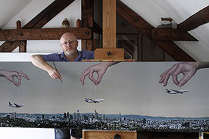 Nach vielzähligen Ausstellungen zu seiner Heimat, dem Rhein-Main-Gebiet und seiner Heimatstadt Kelkheim, zeigt Jörg Strobel, neben einigen neuen Gemälden, nun ausgewählte Exemplare aus den letzten Jahren. Menschen, deren Lebensmittelpunkt die nahen Vorstädte der Finanzmetropole Frankfurt am Main sind, Landschaften des Taunus und Blicke aus der Ferne auf die stets präsenten Frankfurter Bankentürme, die imposanteste Skyline Deutschlands.